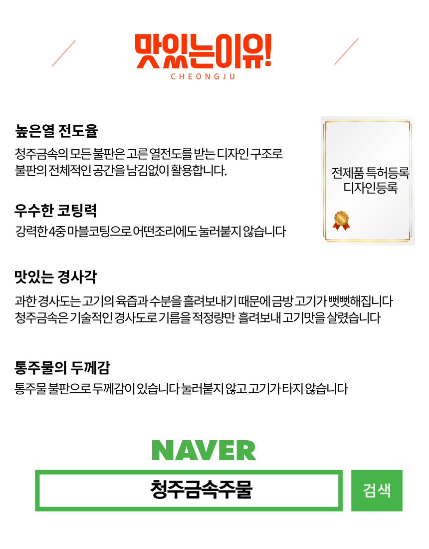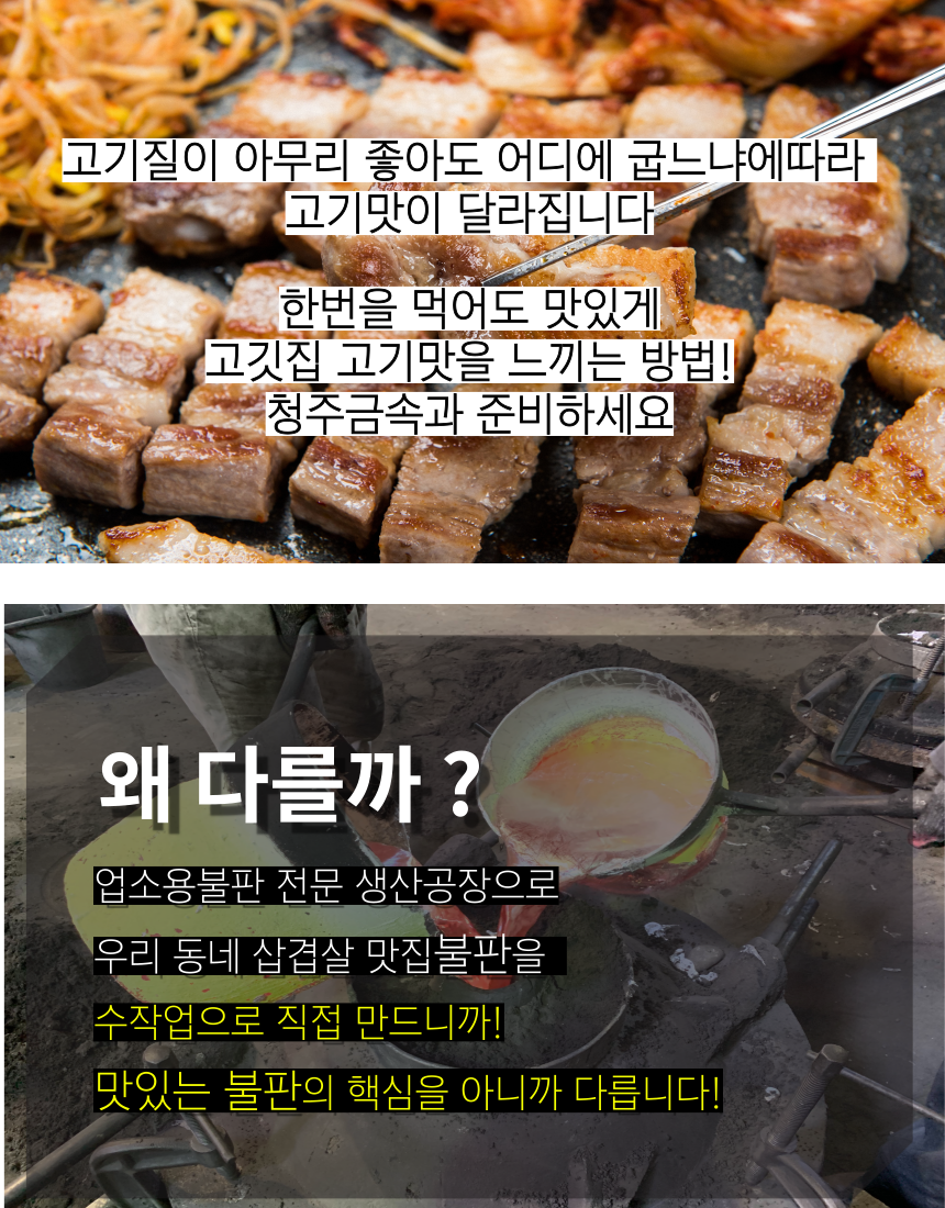 상부 불판은 업소에서 사용하는 고급 마블 코팅처리가 되어있습니다